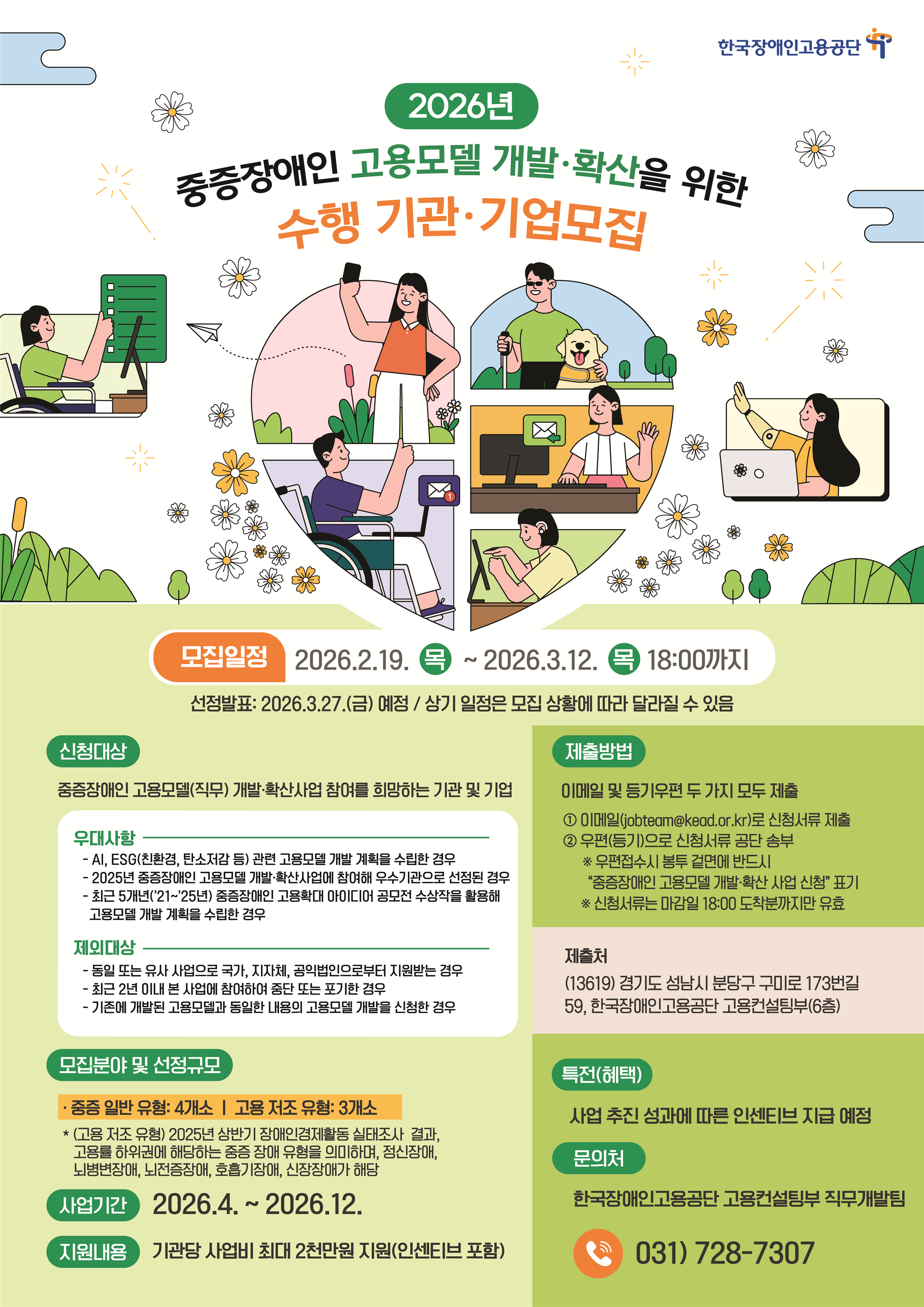 | 1707 | 한국장애인고용공단, ‘2026년 중증장애인 고용모델 개발·확산 사업’ 참여기관 모집 | 2026-02-19 |